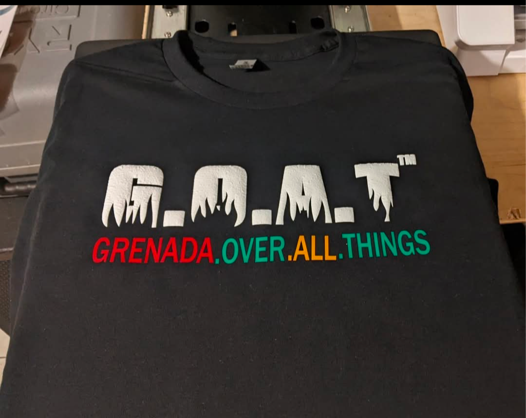 The G.O.A.T Grenada Over All Things T-Shirt is not just a piece of clothing; it's a statement of pride and loyalty. Crafted with high-quality materials and attention to detail, this t-shirt exudes a sense of style and sophistication. Showcasing the iconic G.O.A.T Grenada logo, this garment is a must-have for anyone who values quality apparel and wants to represent their love for this exceptional place. Perfect for casual outings or as a thoughtful gift for a loved one, this t-shirt is a symbol of unity and admiration. Elevate your wardrobe with the G.O.A.T Grenada Over All Things T-Shirt and make a bold fashion statement today!